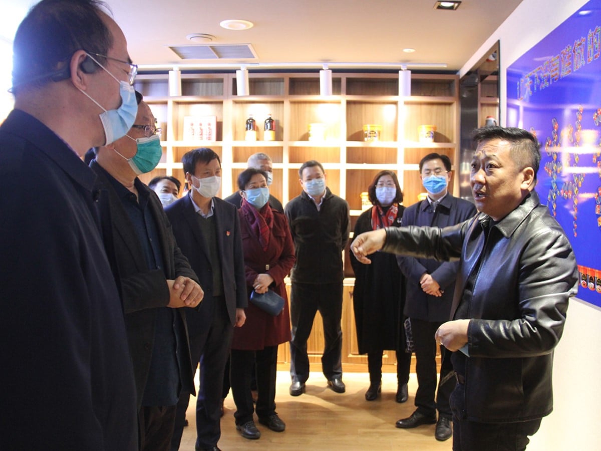 张福财董事长首先引领各级领导至集团科技化展厅,重点向大家介绍了今年疫情期间,公司如何抓机遇、占市场、调机构,推出“小石窖”一罐一菜108道菜品;如何赢战新渠道、新营销、新零售,充分利用互联网+模式,并向武汉疫区捐赠52万余元的“小石窖”小罐菜;接着向各级领导介绍了为响应党中央号召,集团与中国烹饪协会联合成立中餐标准化研发基地,赋能侧供给改革,转化研发成果;最后引领各级领导至车间参观走廊,查看车间复产情况。杨宏钧副主席也向张福财董事长详细询问了车间的生产规模、年度产能、产品应用范围、生产工艺、出口情况及疫情期间平度市委、市政府、李园街道办事处给予企业复工复产的政策和支持。