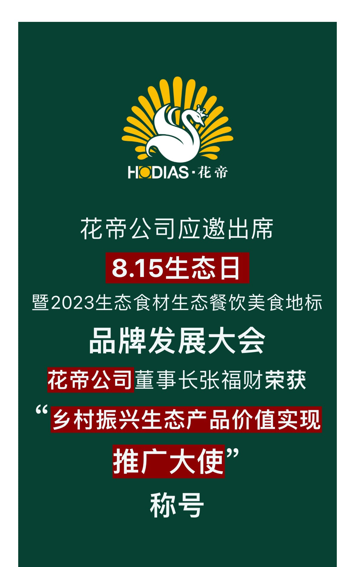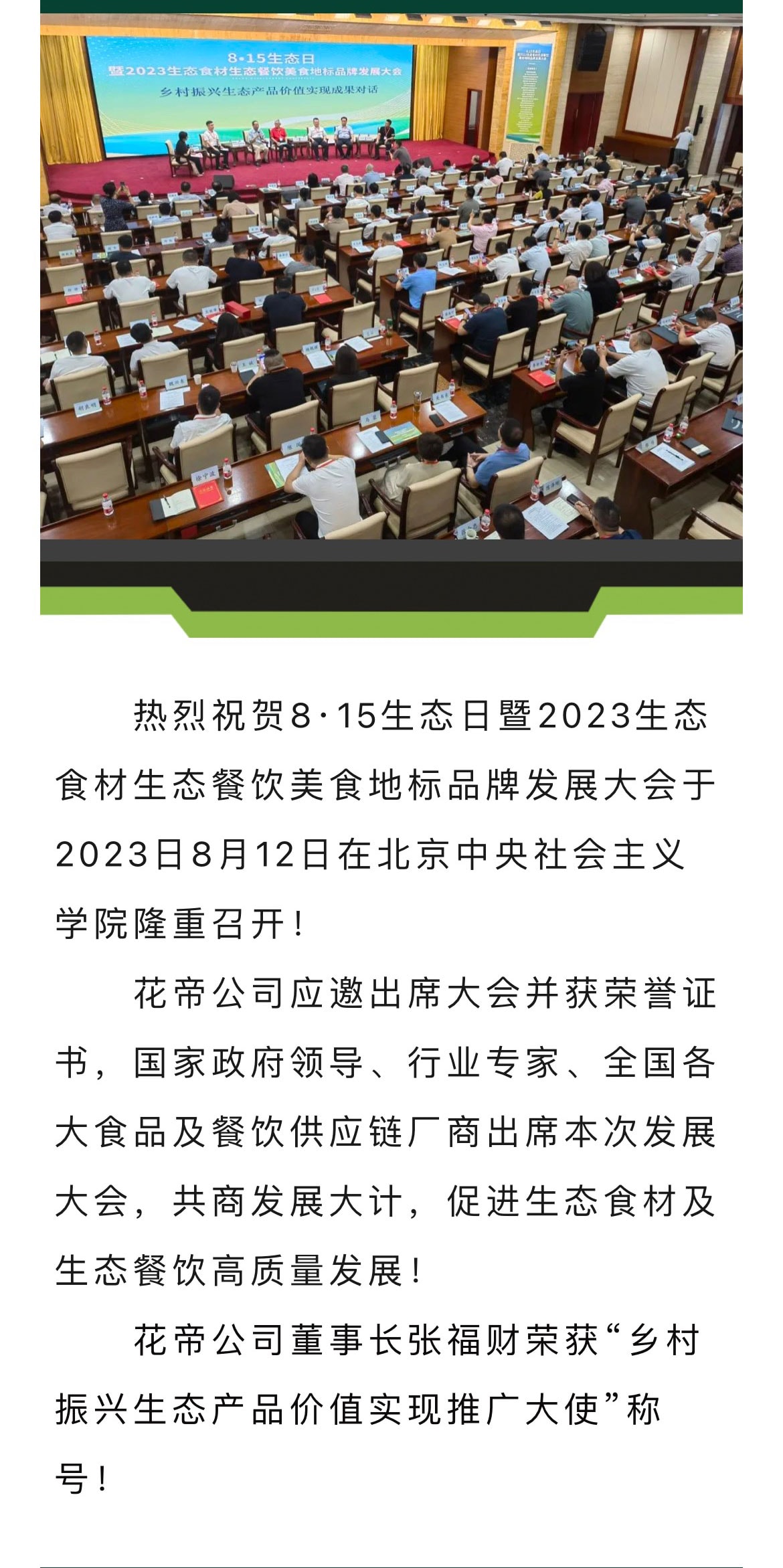 花帝公司丨董事长张福财荣获“乡村振兴生态产品价值实现推广大使”称号