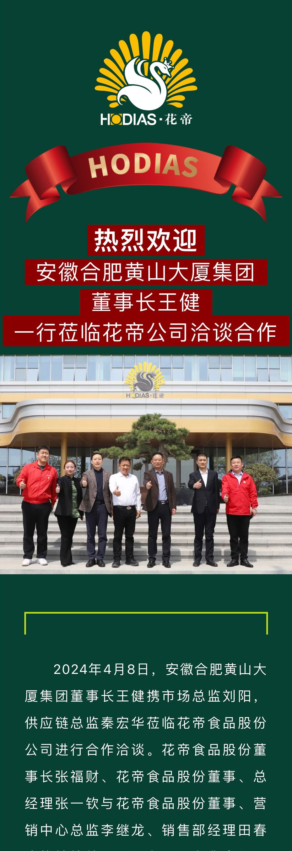 热烈欢迎安徽黄山大厦集团董事长王健一行莅临花帝公司洽谈合作