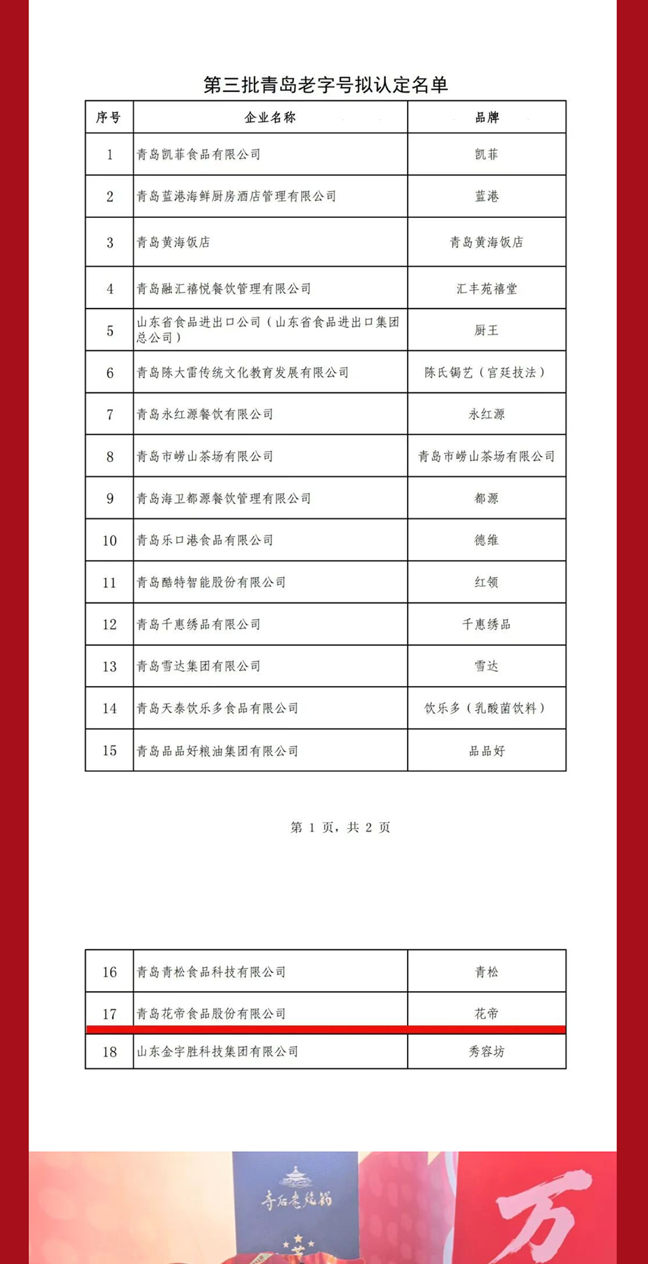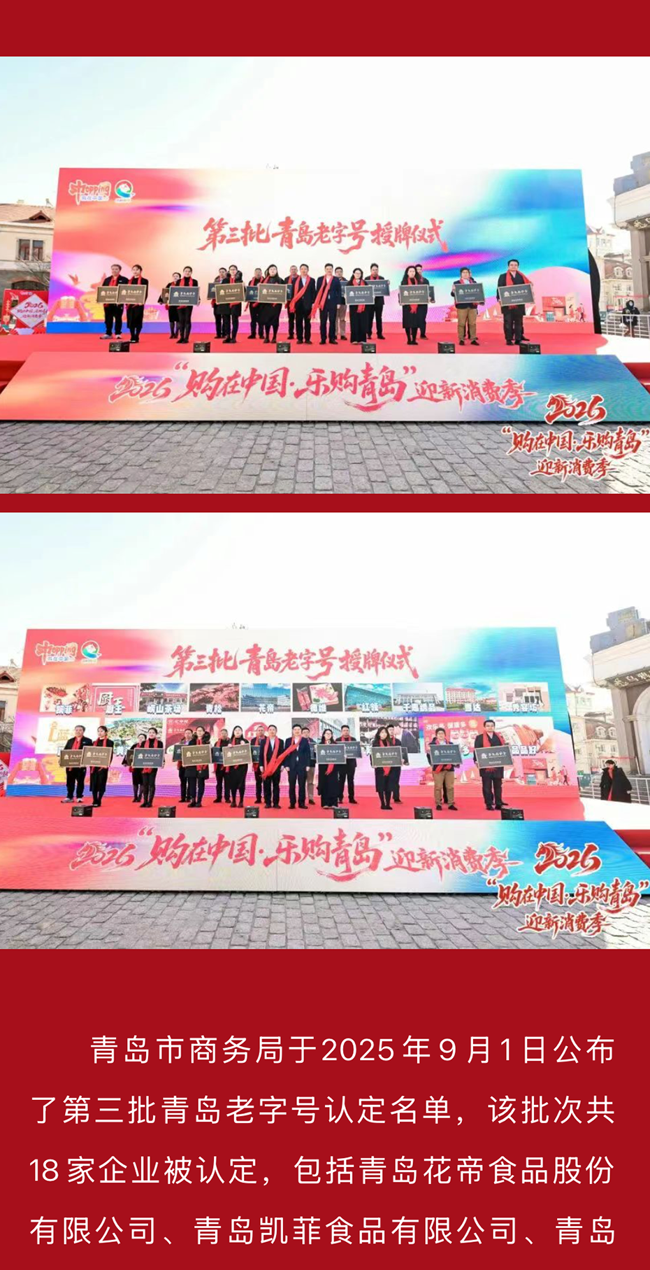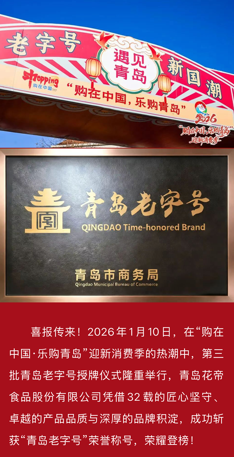 荣耀加冕!花帝食品股份斩获“青岛老字号”荣誉称号